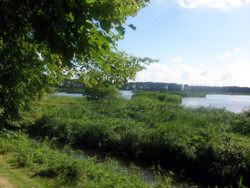 Die Wanderung  startet am Parkplatz an der B 167 und führt durch den ehemaligen Gutspark. Auf  der linken Seite kann man sehr alte Eichen bewundern. Schauen Sie vom Drehberg  aus über den See und entdecken die Turmspitze der Klosterkirche. Am Westufer  des Klostersees laufen Sie weiter bis zur L 34. Dort biegen Sie nach rechts ab  und sind ca. 600 m auf der Landstraße unterwegs. Der Weg führt weiter bis zum  Barschegraben. Dieser ist Abfluss des Kietzer See und Zufluss zum Friedländer  Strom. Der Weg zwischen dem Kietzer See und dem Klostersee ist gut  ausgeschildert. Das gesamte Gebiet ist Europäisches Vogelschutzgebiet. Von  einer Kanzel blicken Sie über den Stöbber auf den Kietzer See. Seeadler,  Rotmilan und viele weitere interessante Vögel sind hier zu Hause. Der Kietzer  See war ursprünglich ein natürlicher See und ist heute ein ca. 200 ha großer  Fischteich. Wandern Sie weiter, sehen Sie vor Altfriedland links die Torfstiche  und rechts den Erlenbruchwald. Danach gelangen Sie über die Klosterstraße in  den ältesten Teil des Ortes – den Kietz, der ursprünglich von Fischern bewohnt  wurde. Folgen Sie weiter der Ausschilderung und kommen Sie wieder in den  ehemaligen Gutspark. Anlaufpunkte sind u. a. das LANGE HAUS, die Klosterruine  und die Klosterkirche. Im Sommer empfiehlt sich ein Abstecher an den Klostersee  zum Baden. Danach erreichen Sie nach kurzer Zeit den Parkplatz an der B 167.  |